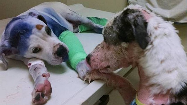 Cão resgatado consola cadela vítima de maus-tratos e foto comovente viraliza