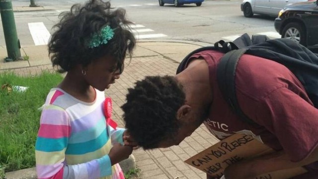 Menina de 9 anos ora por morador de rua e foto viraliza no Facebook