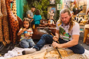 Entre os expositores, o Mestre André da Marinheira e sua filha Natália representam uma bela história de sucessão familiar no artesanato. O mestre, que carrega consigo a tradição de sua família ao trabalhar com escultura em madeira desde os 12 anos, agora vê a herdeira adaptar essa arte ancestral em peças contemporâneas, como colares e pingentes. Ambos enfatizam a oportunidade que a feira proporciona para conectar-se com outros artesãos e com o público, criando um ambiente de inspiração e aprendizado.