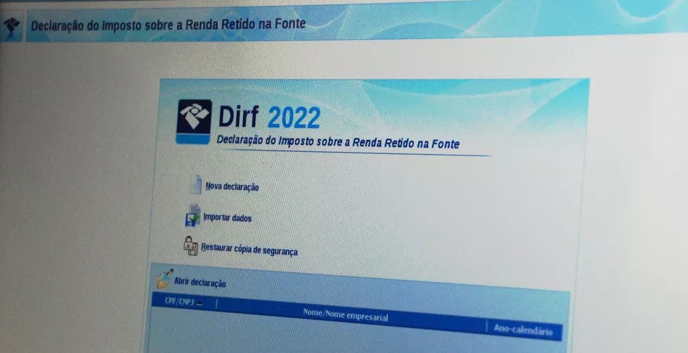 A Receita Federal disponibilizou o Programa Gerador de Declaração (PFG) da Declaração do Imposto sobre a Renda Retido na Fonte (Dirf) 2022. Ele está disponível para download no site do órgão federal. O prazo para que os Municípios enviem informações encerra em 28 de fevereiro.