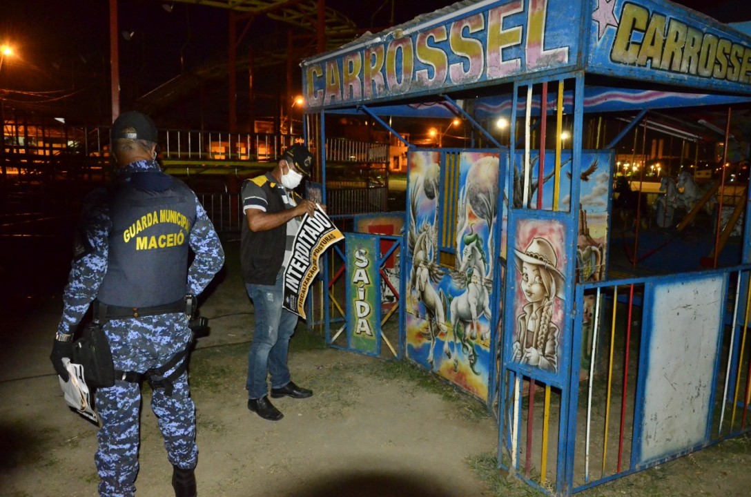 A Secretaria de segurança e convívio social (semscs) junto com a Vigilância sanitária fez uma operação ontem a noite e interditou um parque de diversões por estar descumprindo o decreto Estadual.