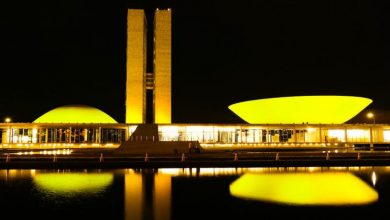 Iluminação especial no Congresso destaca apoio à campanha Maio Amarelo