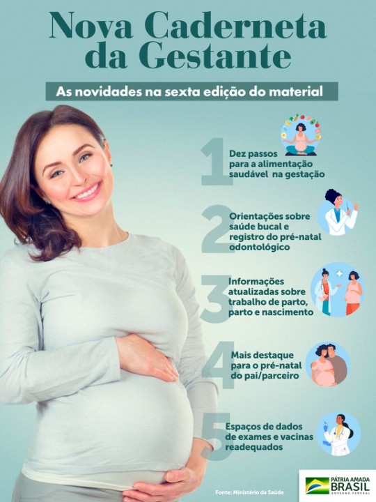 Considerando as atuais necessidades das gestantes e dos profissionais de saúde, o Governo Federal, por meio do Ministério da Saúde, realizou a atualização da Caderneta da Gestante. A 6ª edição conta com algumas novidades:
