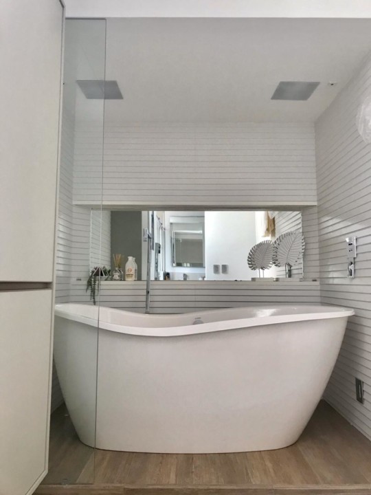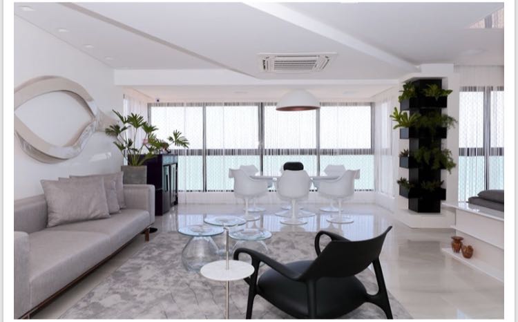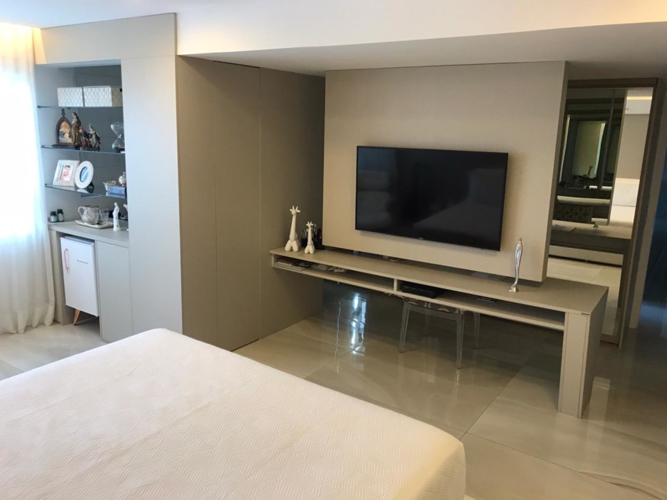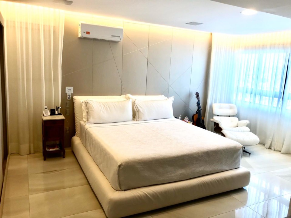 Andar alto, sala para 3 ambientes, varanda integrada, automação áudio/vídeo/cortina, lavabo e copa/cozinha (com sonorização), sala de brinquedo, 3 suítes sendo 1 master com banheira de imersão (todas tb com sonorização), área de serviço seca/molhada, dependência completa de empregada, câmeras de segurança, central telefônica, 2 vagas de garagem.