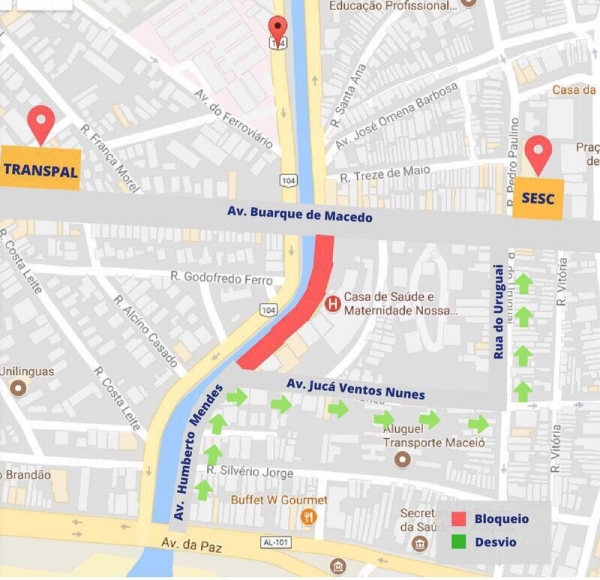 Para os motoristas que frequentam a região, a recomendação é acessar a Avenida Jucá Ventos Nunes, seguindo para a Rua Uruguai, em direção ao Serviço Social do Comércio (Sesc) – Unidade Poço.