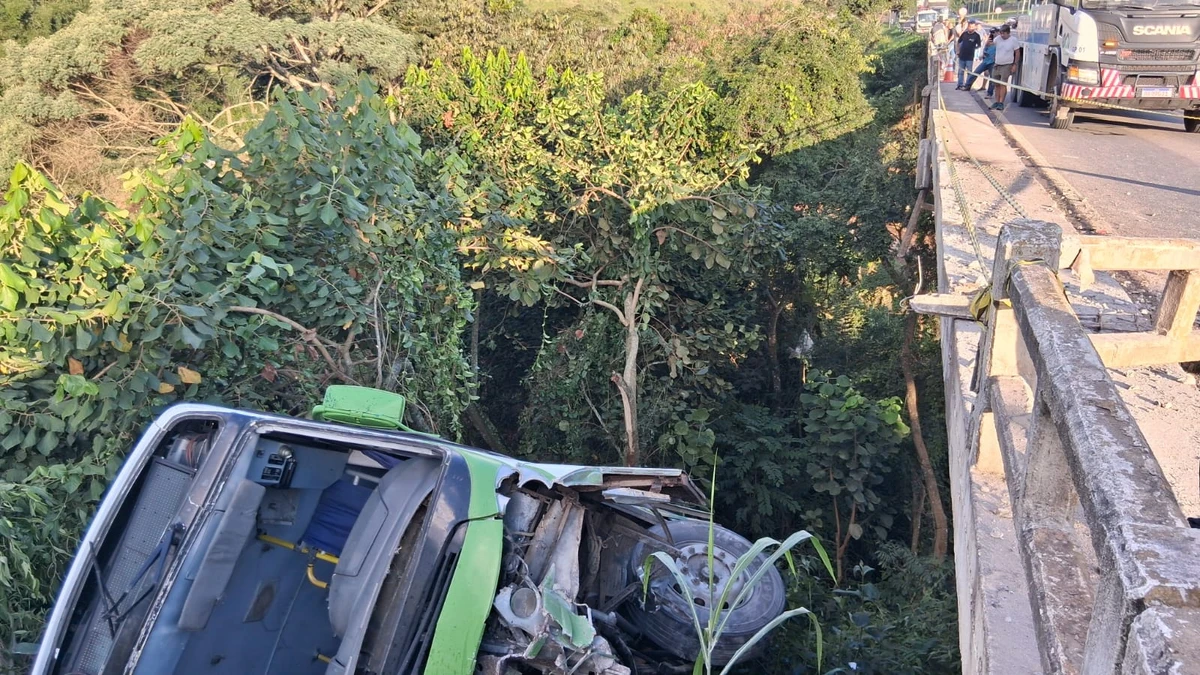 De acordo com informações preliminares, o motorista do ônibus relatou que o eixo do veículo quebrou, levando o coletivo a perder o controle. O ônibus saiu da pista, quebrou o guarda-corpo da ponte e caiu, parando por poucos metros em um barranco. A descida abrupta foi atenuada por árvores que “seguraram” o veículo, evitando uma queda ainda mais severa.
