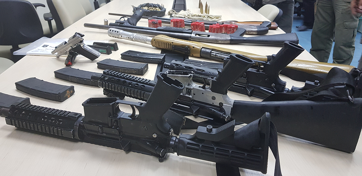 Foram apreendidos um fuzil PA-15 de numeração raspada, quatro carregadores, um fuzil AM-15 com a numeração raspada, 82 munições de fuzil calibre 556, 49 cartuchos de calibre 12, duas espingardas de repetição calibre 12, um fuzil calibre 5,56 com dois carregadores, um fuzil calibre 7.62, um revólver calibre 38 com 21 munições,29 munições de calibre 7.62, três balaclavas, um colete balístico, uma caixa de grampos usados para bloquear rodovias, 227 cartuchos de calibre 556 e cerca de 210 quilos de explosivos.