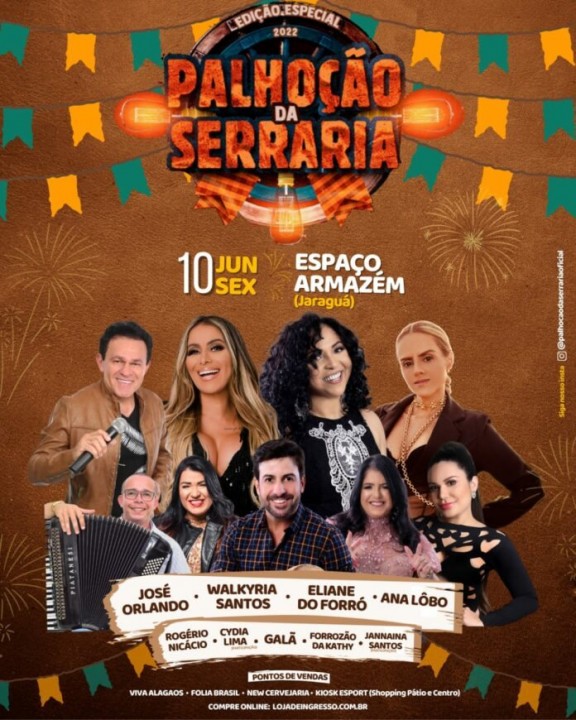 Com grandes atrações da cena musical do forró que fizeram muito sucesso na década de 90 e ainda estão fazendo muito sucesso em Brasil, a “Edição Especial” do Palhoção da Serraria promete agitar e relembrar muitas emoções que foram vividas na época que Maceió tinha vários “palhoções” durante os festejos juninos que eram realizados na cidade, com o crescimento da população nos bairros em toda Maceió, a opção é relembrar os saudados eventos juninos, mas agora em “edições especiais” como esta sendo realizado o Palhoção da Serraria.