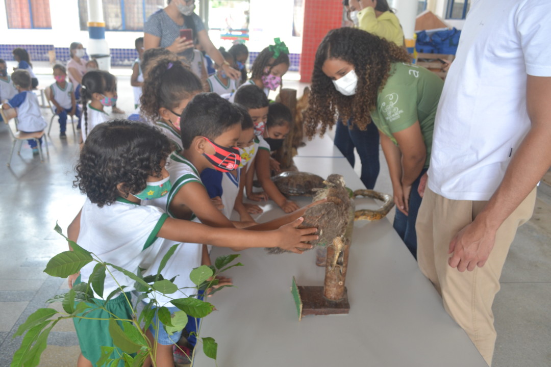 Mais de 75 crianças do CMEI ficaram atentas as orientações passadas por servidores e estagiários da Superintendência Municipal de Desenvolvimento Sustentável (Sudes) que tratavam sobre a fauna e a flora do Parque Municipal. Para isso, fizeram o uso de animais taxidermizados do museu que foram transportados e expostos para aprendizado dos alunos.