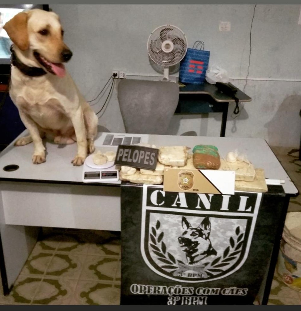 Após uma denúncia, agentes da Delegacia de Homicídios, militares do Pelopes e o canil do 3º Batalhão foram ao local. Os militares revistaram a casa, mas o cão farejador indicou um local suspeito fora da residência. Ao cavar o local indicado pelo animal, os policiais encontraram um balde com vários tabletes de pasta base de cocaína.