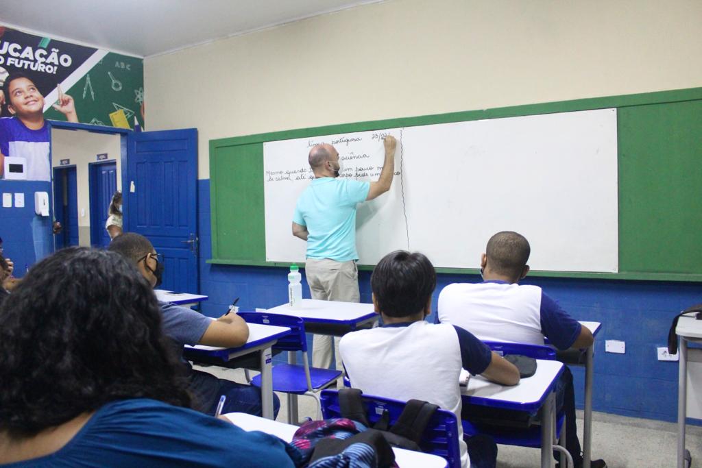 Com a ampla reforma, as grades deram lugar a carteiras, enquanto as celas foram substituídas por cinco salas de aula climatizadas. O espaço anexo à Escola Renato de Mendonça também tem copa e refeitório, além das salas da psicóloga e coordenação, como explica o diretor Carlos Alberto dos Santos.