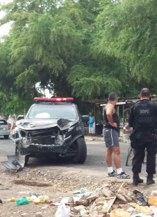 Policiais do Batalhão de Operações Especiais da Polícia Militar (Bope), tentaram seguir para a ocorrência onde o militar foi baleado e acabaram colidindo contra uma árvore ao tentar desviar de um buraco, no bairro do Vergel.
