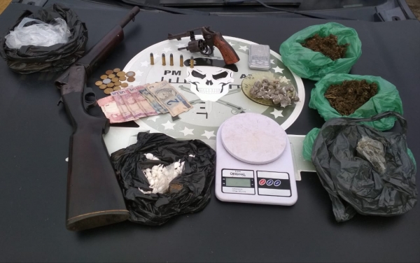 Nas últimas horas, equipes da Polícia Militar registraram apreensões de armas de fogo e drogas em cidades da capital e interior. Duas motocicletas também foram apreendidas nas ações.