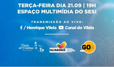 A Prefeitura de Porto de Pedras promoverá nesta terça-feira (21), às 19h, mais uma nova Audiência Pública sobre o Plano Diretor do turístico município do Litoral Norte de Alagoas. O evento será transmitido ao vivo pelas páginas do prefeito Henrique Vilela no Facebook e YouTube.