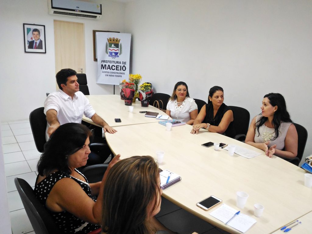 Com o tema Construindo laços de trabalho e cidadania, o prefeito Rui Palmeira e a chefe de gabinete e coordenadora da Plataforma dos Centros Urbanos (PCU), Juliana Vergetti, receberam, nesta sexta-feira (17), o vice-reitor da Universidade Federal de Alagoas (Ufal), José Vieira, a pró-reitora de Graduação, Sandra Regina, a pró-reitora Estudantil, Silvana Medeiros, e representantes das secretarias Municipais de Saúde, Educação e Assistência Social, além da Superintendência Municipal de Transportes e Trânsito.