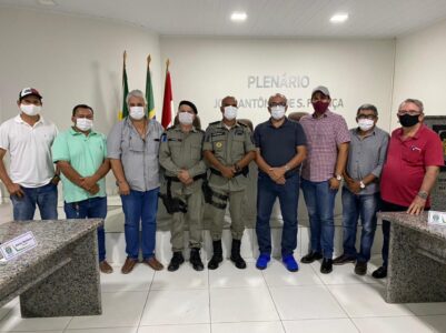 Na reunião foram discutidas estratégias para ações de combate ao coronavírus, bem como novas ações de políticas públicas para aprimorar a segurança de toda população do município. Da reunião participaram ainda o presidente da Câmara, Eraldo Santos e os vereadores Chaveiro do Gado, Nido Félix, Tonico Amaral e Chico Patrício.