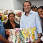 O Prefeito Erivaldo Mandu, ao lado da Secretária de Assistência Social, participou da entrega de 249 cestas básicas para as gestantes e nutrizes cadastradas nos Projetos Sociais do Município.
