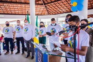 A secretária municipal de Educação, Ivana Carla, o deputado estadual Ricardo Nezinho e os vereadores Léo Saturnino, Edvânio do Cangandu, Adriano Targino, Pablo Fênix, Melquisedeque de Oliveira, Doutor Fábio, Vicente do Remédio, Allison da TIM e Márcio do Canaã, o prefeito Luciano Barbosa participaram da solenidade de inauguração da escola.