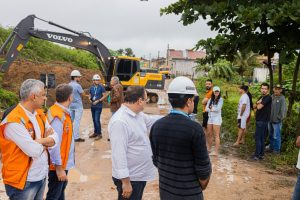 Na companhia do secretário de Infraestrutura, engenheiro Roany Izidoro, o prefeito Luciano conversou mais uma vez com os moradores e acompanhou os serviços de drenagem em toda área.
