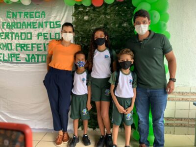 Kits escolares com fardamentos, mochilas e tênis estão sendo entregues. Prefeito Felipe Jatobá explica que equipamentos melhoram o ensino e o desenvolvimento social dos estudantes