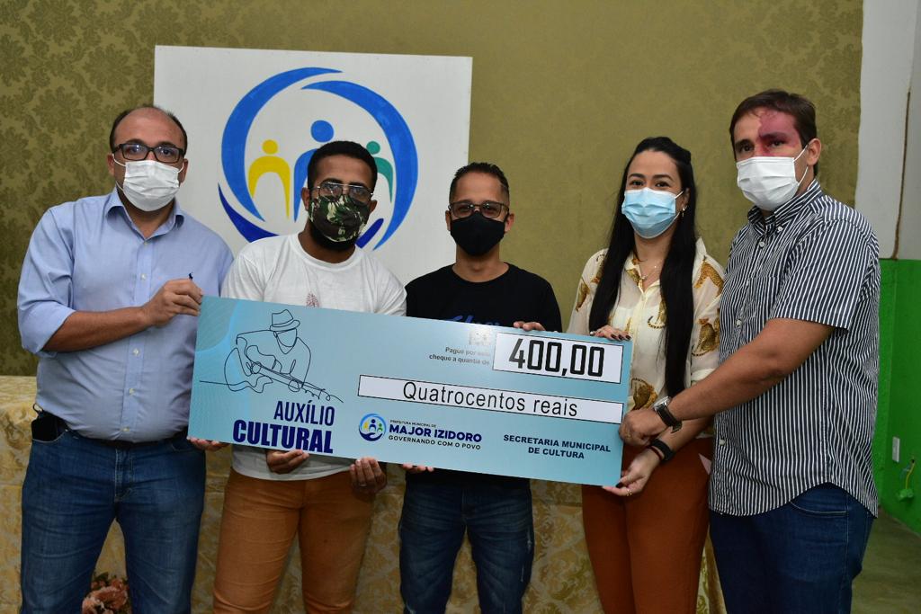 Instituído pela gestão Theobaldo Cintra/Leopoldo Amaral, para prestar uma ajuda financeira aos artistas de Major Izidoro, impedidos de trabalhar dentro da normalidade por conta da pandemia da Covid-19, o Auxílio Cutural teve sua primeira parcela paga pela prefeitura municipal nesta quarta-feira, 28.