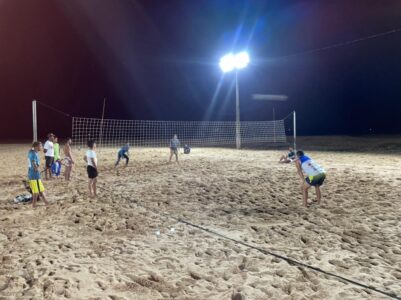 As arenas contam com fitas de marcação, posteação para a rede e iluminação com refletores, permitindo a prática de esporte no período noturno.