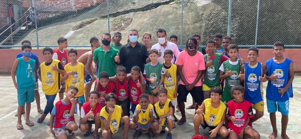 A Prefeitura de Maceió realizou a entrega de materiais esportivos nas Grotas do Neno, no Feitosa, e do Estrondo, na Pitanguinha. A ação foi feita nesta quarta-feira (12) e beneficiou cerca de 160 jovens e crianças, visando a inclusão social através de apoio aos projetos executados nas comunidades.