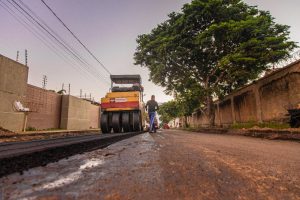 Mais de 500 metros de pavimentação asfáltica já foram concluídos e a obra segue avançando.