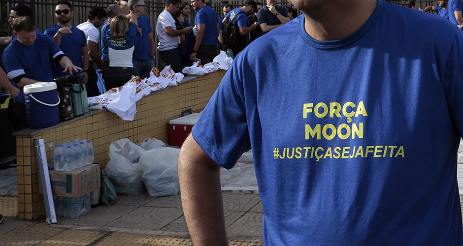 O advogado de Moon, Renê Siufi, apresentou aos jurados a tese de legítima defesa. O réu, ao dar sua versão dos fatos, afirmou que atirou porque sentiu que poderia ser atropelado, alegando que Adriano, de acordo com sua avaliação no local e laudos posteriormente juntados ao processo, estava sob efeito de álcool e medicamentos controlados.