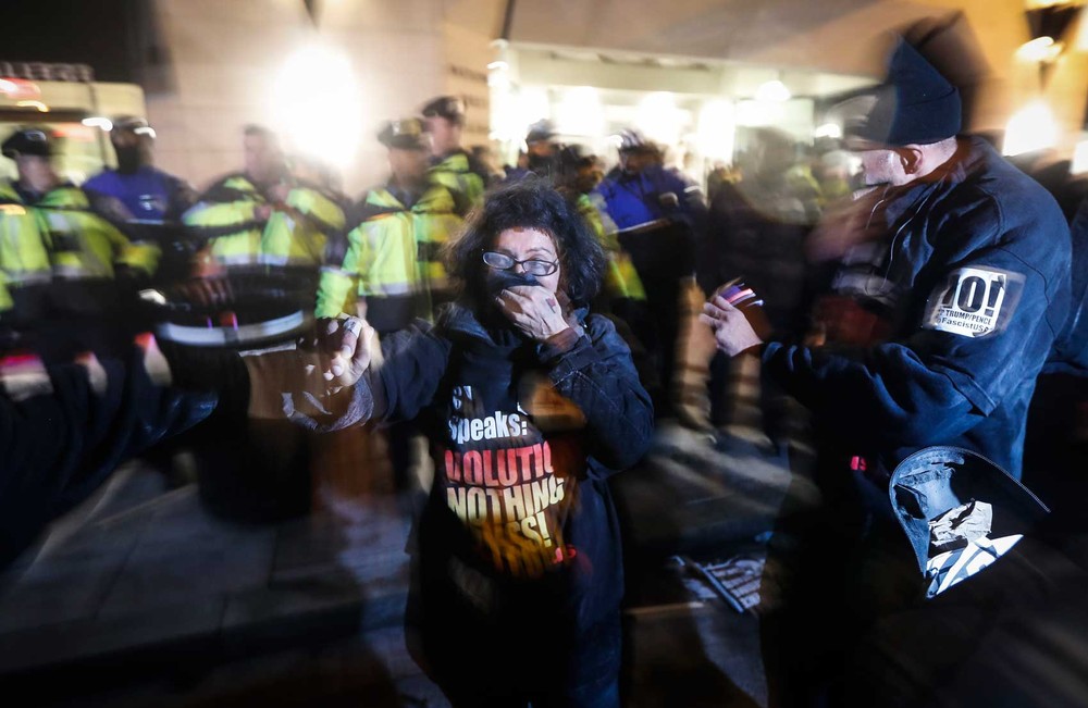 Os manifestantes contra o presidente eleito, Donald Trump, entraram em confronto em Washington, na noite de quinta-feira (19), véspera da sua posse. A polícia usou spray de pimenta na tentativa de controlar a confusão, de acordo com a Associated Press.