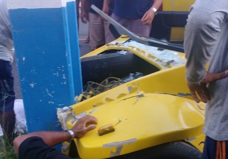 De acordo com informações, um turista conduzia o veículo quando colidiu frontalmente contra um poste de alta tensão, deixando os três passageiros feridos e o condutor preso às ferragens.
