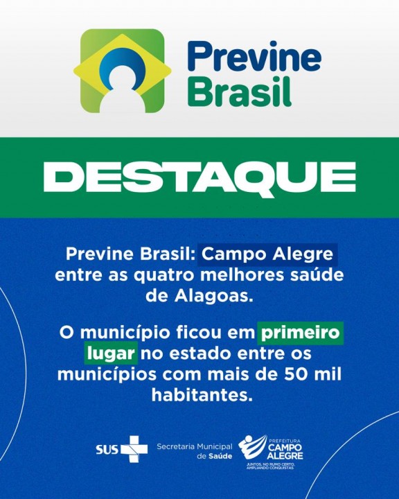 No ranking o município aparece na quarta colocação entre todos os municípios do Estado do estado de Alagoas. Já entre os municípios com mais de 50 mil habitantes Campo Alegre ficou em 1º lugar. O resultado foi divulgado pelo Ministério da Saúde, por meio da SAPS (Secretaria de Atenção Primária à Saúde).