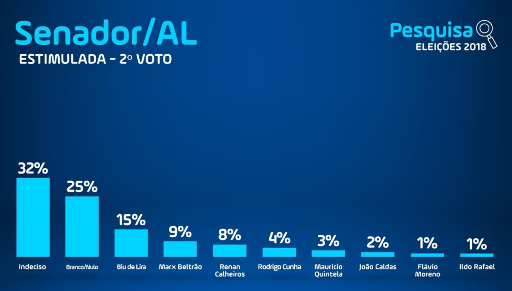 O tucano deixou para trás aquele que tem sido anunciado como segunda opção do Palácio República dos Palmares, o deputado Maurício Quintella Lessa (PR), com 7%, na quinta colocação.