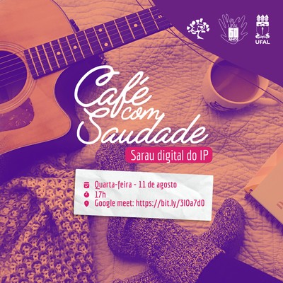 O Serviço de Psicologia Aplicada (SPA), o Centro Acadêmico de Psicologia UFAL e o Coletivo Qualidade de Vida Acadêmica (QVA) promovem um sarau digital em comemoração ao Dia do Estudante, nesta quarta-feira (11), a partir das 17h. O Café com Saudade tem por objetivo promover um momento dedicado à saúde socioemocional entre os participantes e reforçar vínculos afetivos necessários como suporte ao enfrentamento do contexto de pandemia. A atividade é aberta a docentes e técnicos e para participar, basta acessar o link : meet.google.com/wsg-uggk-hre, no dia e horário do evento.
