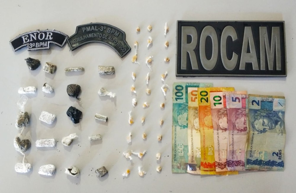 Em Arapiraca, a guarnição da Ronda Ostensiva com apoio de Motocicletas do 3º BPM apreendeu, nessa quarta (03), 30 pedras de crack, 20 bombinhas de maconha e R$ 230, 00, em espécie com um adolescente de 17 anos. O menor de idade estava dentro de uma residência do bairro Brasília e foi localizado após denúncia anônima. O jovem foi encaminhado à Central de Polícia, no bairro Baixão, onde foi confeccionado um Termo Circunstanciado de Ocorrência (TCO) análogo ao crime de Tráfico de drogas em seu desfavor.
