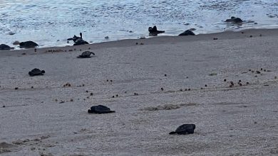 Filhotes de tartaruga-de-pente são soltos no mar em emocionante ação de preservação na Praia de Guaxuma, Maceió.