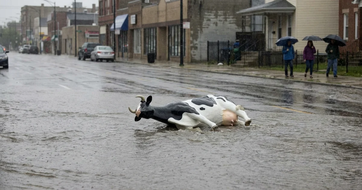 Durante o auge do temporal, uma cena inusitada chamou a atenção de quem passava pela Avenida Alberto Cintra. Um ornamento em formato de vaca, que decorava a via, foi levado pelas águas da correnteza. O momento curioso foi capturado em vídeo por motoristas e pedestres que se encontravam nas proximidades, e rapidamente se espalhou pelas redes sociais, atraindo a atenção do público e tornando-se viral.
