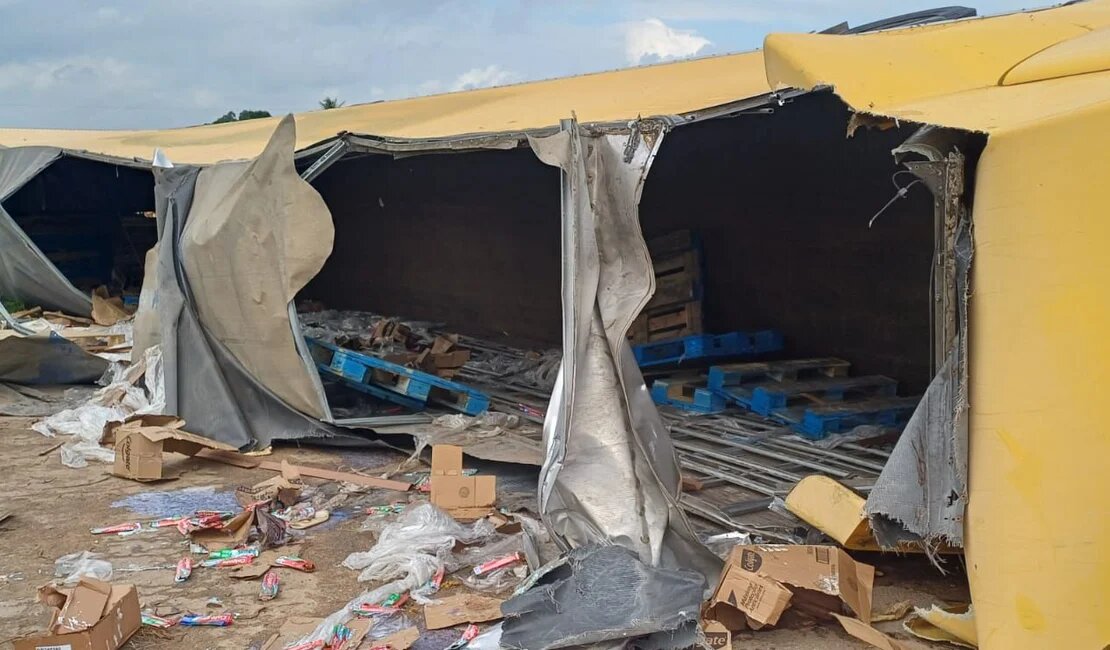 A Polícia Rodoviária Federal (PRF) foi acionada para o local e informou que a carreta transportava uma carga de cremes dentais, que foi saqueada rapidamente por populares que passavam pela rodovia. Os produtos ficaram espalhados no acostamento, e a cena de dezenas de pessoas recolhendo a carga pôde ser vista logo após o acidente. Embora o tombamento tenha sido de grandes proporções, não houve necessidade de interdição da via, e, segundo a PRF, a fluidez do trânsito não foi comprometida.