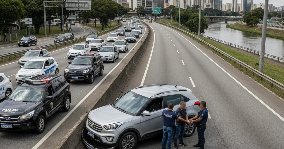 A situação começou quando policiais em patrulhamento rotineiro foram alertados sobre a presença de um veículo roubado na área. Ao localizarem o Hyundai Creta, os agentes deram sinal de parada, que foi ignorado pelo condutor. A Secretaria informou que, durante a fuga, o motorista não hesitou em realizar várias manobras perigosas, incluindo dirigir pela contramão e em alta velocidade, características que somente aumentaram o risco na movimentada via.