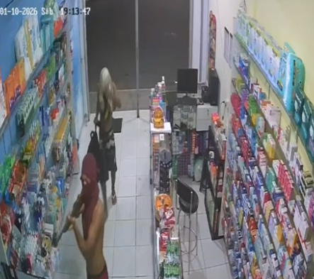 Imagens mostraram que a abordagem dos assaltantes foi brusca e intimidatória. Em questão de menos de um minuto, os criminosos, com os rostos cobertos, invadiram a farmácia. Um deles portava uma arma de fogo de cano longo, que utilizou para ameaçar a funcionária, gerando momentos de intensa tensão e desespero. “Siga suas instruções”, pareceu ser a mensagem clara deixada pela presença armada, que visava controlar a situação.