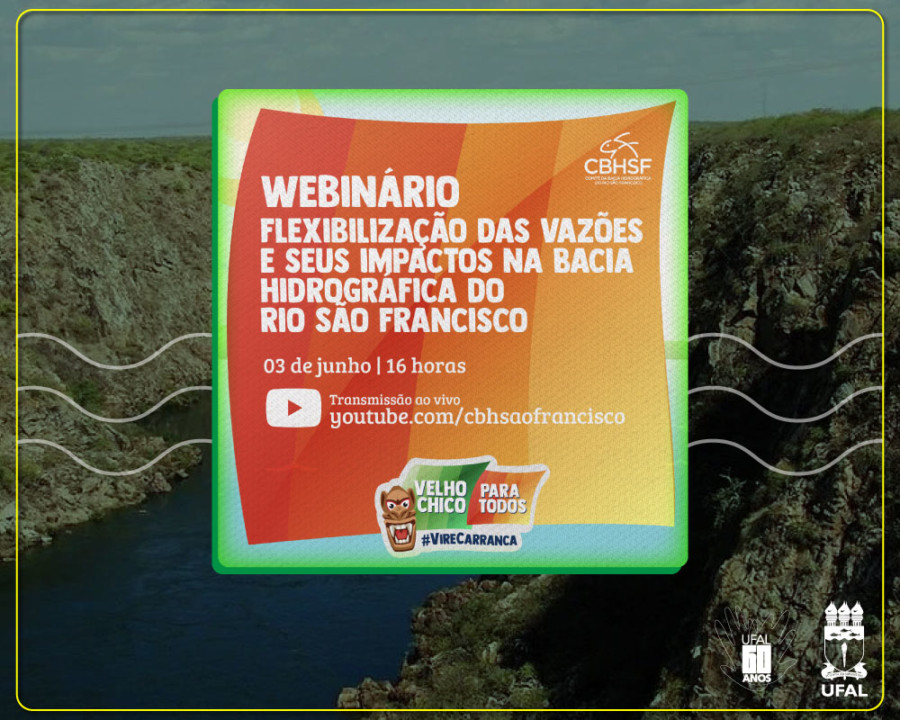 O webinário Flexibilização das vazões e seus impactos na Bacia Hidrográfica do Rio São Francisco será transmitido pelo Canal CBH São Francisco no Youtube.