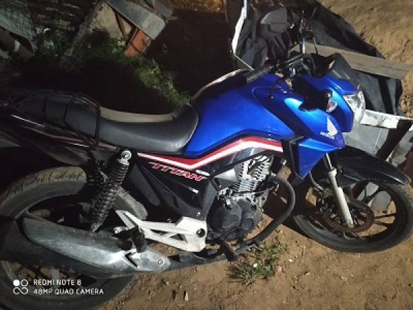Os militares foram acionados para averiguar uma denúncia, indicando a presença de um ciclomotor Honda CG 160 Titan, cor azul, abandonado. No local, a equipe identificou a moto e constatou que ela possuía queixa de roubo.