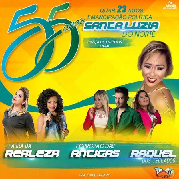 O vereador Cau Bernardes tem a honra de convidar toda a população para participar das festividades alusivas ao dia 23 de Agosto comemorando assim, a Emancipação Politica do Município de Santa Luzia do Norte em seus 55 anos.