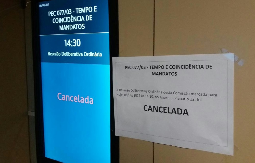 A reunião desta terça foi cancelada antes mesmo do horário de abertura, a pedido do presidente da comissão, deputado Lúcio Vieira Lima (PMDB-BA). Segundo ele, há divergência entre partidos com relação a alguns pontos do texto, principalmente sobre o sistema eleitoral.