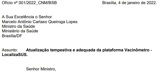 Confira a íntegra do ofício encaminhado ao ministro da Saúde.