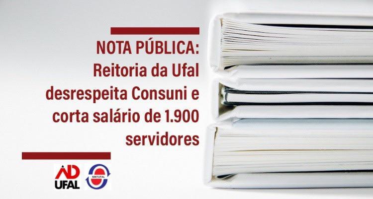 A gestão da Universidade Federal de Alagoas descumpriu, na folha salarial do mês de junho/19, a decisão do Conselho Universitário (CONSUNI), que determinou a anulação de todos os processos administrativos que definiam o corte das rubricas salariais nos vencimentos/proventos dos beneficiários das respectivas decisões judiciais (planos econômicos: URP de fevereiro de 1989 – 26,05%; URV – 3,17%; reajuste de 28,86%). Os processos foram anulados pelo CONSUNI em sessão de 14 de maio/19, que acatou o recurso dos/as trabalhadores/as prejudicados/as. Este recurso, interposto pelos sindicatos, demonstrou um conjunto de ilegalidades, arbitrariedades e erros processuais que não só tornavam os atos viciados, como colocavam em risco a Autonomia Universitária e o Estado Democrático de Direito. Ainda assim, ao arrepio da legislação e sem nenhum processo administrativo vigente, a reitora determinou o corte nos salários de 1.900 trabalhadores, em sua maioria aposentados, idosos e pensionistas.